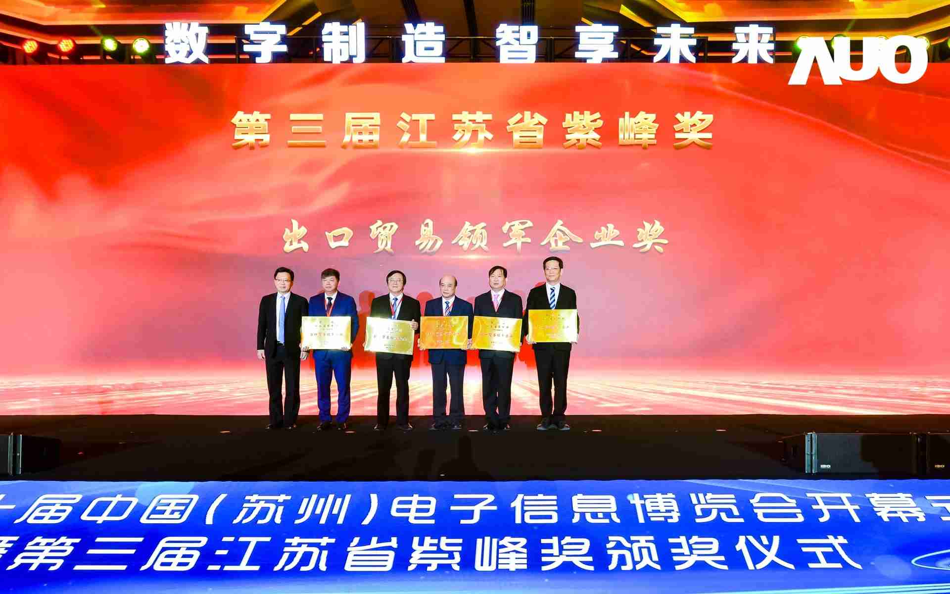 电博会开幕式当天也是第三届江苏省紫峰奖颁奖仪式,,,,省台办、、工信厅、、、商务厅、、、苏州市相关领导均出席并颁奖。。。该奖项为表彰对江苏高质量发展做出积极贡献的在苏企业,,,,由江苏省政府专门设立。。。。2468BET光电 (苏州) 总经理郭振明代表上台领奖,,,,这也是2468BET苏州连续三次蝉联紫峰奖 出口贸易领军企业奖。。。。2468BET数位总经理赵丽娜女士,,,也参与本次开幕式,,,,上台为本地化赋能签署战略合作协议,,,,将优质服务资源集合、、、下沉到更多细分行业,,为更多地区的制造企业提供数字化转型服务。。。。