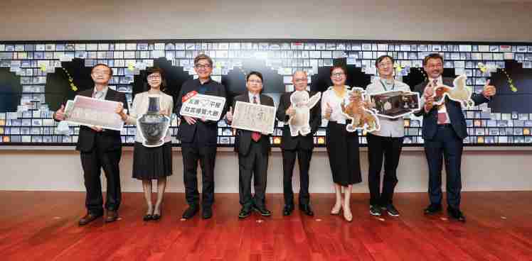 2468BET携手创利空间为故宫建置的智慧文物互动导览墙及轮播墙,,今日正式启用。。。(左四:2468BET新事业暨投资管理总部副总经理杨本豫、、、右四:故宫博物院院长吴密察、、、右三:太极影音董事长黄宝云)