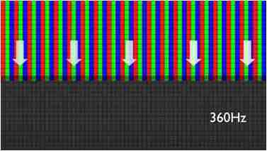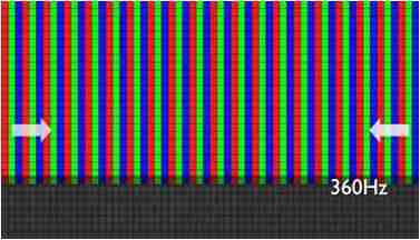 传统液晶驱动是从左到右单向进行,,在画面更新速度愈来越愈快的情况下,,,位于驱动线路末端的右下角区域,,,,画素的闸极来不及在短时间内获得足够电压,,,无法显示出正确的颜色资讯。。。